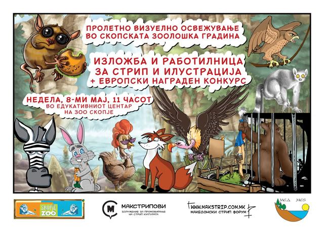 Здружението за промовирање на стрип културата „МАКСТРИПОВИ“ – Скопје во соработка со Скопската зоолошката градина в недела, на 8-ми мај во 11 часот во Едукативниот центар на Зоо Скопје организира изложба на илустрации наменети за кафезите на животните.